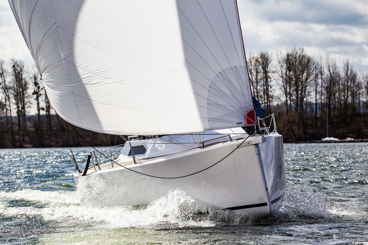 Der optionale 25 qm Gennaker wird an einer festen Gennakernase gefahren. Dabei ermöglichen die Chines stabile Gleitfahrten bei Starkwind auch mit kleiner Crew.