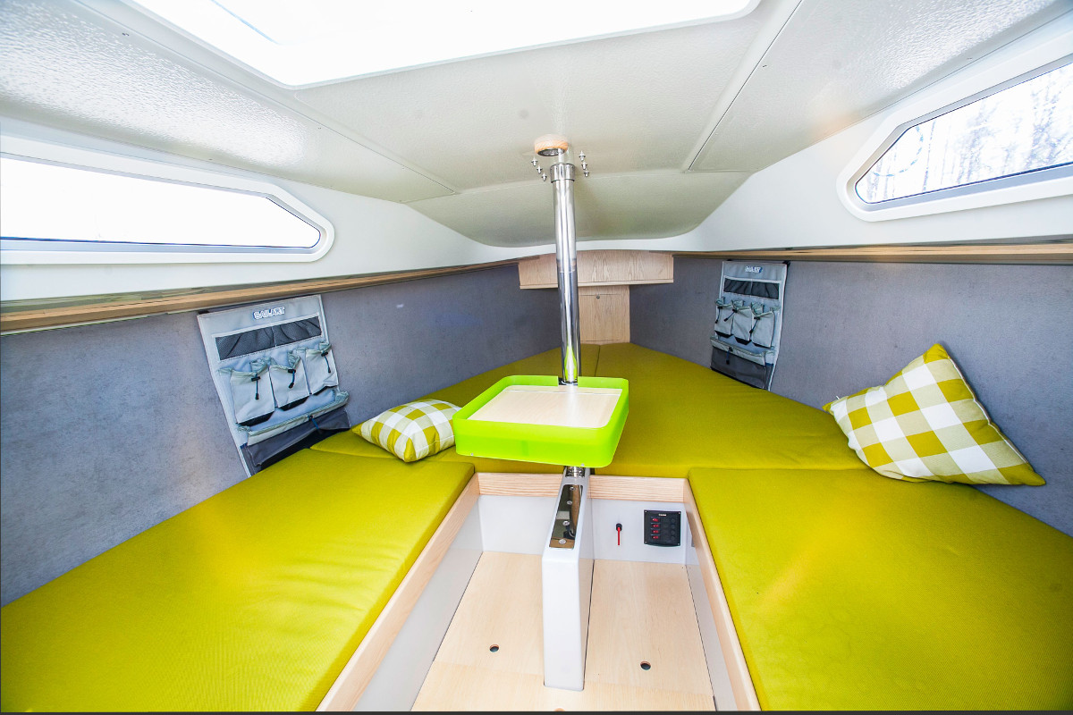 Aufgrund der breiten Wasserlinie und den ausgeprägten Chines hat der Pocket Performance Cruiser erstaunlich viel Platz unter Deck. Vier breite Kojen und ein variables innovatives Schranksystem vermitteln ein klares zeitgemäßes Design.